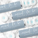 This mint favor wrapper features a simple and elegant design with a dusty blue background and all-white fonts, with all text centered for a clean, modern look. Across the top, the phrase "Mint To Be" is written in a script calligraphy font, adding a romantic touch. The couple’s names and wedding date appear just below in a classic serif font for timeless appeal.
