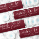 This mint favor wrapper features a simple and elegant design with a burgundy red background and all-white fonts, with all text centered for a clean, modern look. Across the top, the phrase "Mint To Be" is written in a script calligraphy font, adding a romantic touch. The couple’s names and wedding date appear just below in a classic serif font for timeless appeal.