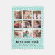 Best Dad Ever blanket with 9 square photos arranged in a grid layout each with a white border around them and all against a mint turquoise gingham pattern. It makes a great gift for father's day or your dad's birthday.