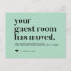 Your Guest Room Has Moved Moving Announcement featuring a modern script and font typography and a heart.