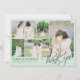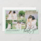Beautiful wedding thank you card in pastel green featuring a photo collage to which you can add five of your wedding photos. Thank you is written in a gorgeous calligraphy script in the bottom right corner, with loops. Add your names and wedding date and location in an elegant font. The back is lined so you can write a personal message by hand.