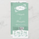 This stylish, modern and romantic mint green, silver gray, and white floral wedding menu has PRINTED on sage green ribbons with green and silver grey joined hearts with the word "LOVE" on them in a vintage style font that matches the wedding invitation shown below. The text is customizable. It is shown here on a rack card which has a high gloss finish on the front side and a matte finish on the back. If you would prefer the menu on paper to match your invitations, just email your request to the address below. ***PLEASE NOTE that if you change the font or size of the font, it may alter how your card prints. It will print the way you see it on your monitor, so if you have alignment issues, or sizing problems, please contact me for help. I will not see your menu once you order it, and Zazzle will NOT edit anything (typos, alignment, etc.). If you require assistance or would like any other matching items, please email your request to niteowlstudio@gmail.com.
