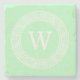 Mint White Greek Key Rnd Frame Initial Monogram Stone Coaster