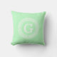 Mint White Greek Key Rnd Frame Initial Monogram Throw Pillow