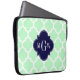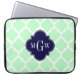 Mint, White Moroccan #5 Navy 3 Initial Monogram Laptop Sleeve