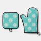 Mint White Snowflake Pattern Oven Mitt & Pot Holder Set