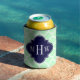 Mint Wht Moroccan #5 Navy Blue 3 Initial Monogram Can Cooler