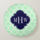 Mint Wht Moroccan #5 Navy Blue 3 Initial Monogram Round Pillow
