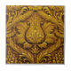 Reproduced from an antique English Minton tile molded in high relief. Rich gold color. Use as wall and backsplash tiles for kitchen and bath. Display as art, use around a fireplace opening or as trivets, coasters, decorative accessories, and, of course, gifts. This tile is available in 4.5 inch and 6 inch sizes. We also have the same design in other colors.