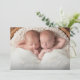 This sweet birth announcement features the phrase "we believe in miracles" in shimmery faux gold foil over a full bleed photo of your newborn twin babies.