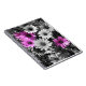 Cheerful purple African daisies in black and white with partial color floral image with the inspirational words Miracles Happen. Flower photography by Susan.