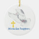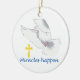 Lightweight, smooth, pure white ornament with nice sheen. Perfect size to be seen from across the room ... and to attract closer inspection! Price was great for ordering enough for the whole family! Clear, bold black design just as requested. Matches the order exactly. Just so nice!