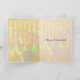 Colorful menorah with "Miracles Happen" text. Art on every side. Customize your greeting inside. Chanukah card.