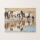 A beautiful band of wild pintos finds refreshment at a water hole.