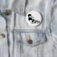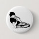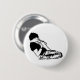 A black and white button featuring a man kneeling and singing into a microphone.