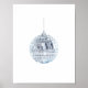 Photograph of a hanging ornament that looks like a disco ball against a white backdrop