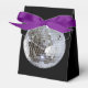 Black tent-style with purple ribbon favor box with an image of a dazzling mirrored disco ball. Change the ribbon to silver for a more elegant look. See the entire Disco 70s Favor Box collection in the PARTY FAVORS section.