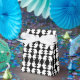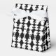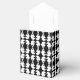 A fun design for young and old. This black and white favor box features the mirrored image of a ghost, in a repeating pattern. The black background and ribbon tie can be customized.