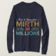 This t-shirt design is a celebration of laughter! "Mirth in Millions" is displayed in a playful multicolor scheme. Imagine "Mirth" in whimsical colors that spark joy, like sunshine yellow or dandelion puff white. "Millions" could take on bolder, celebratory hues like fiery orange or bright purple. This combination creates a design that's both lighthearted and contagious, perfect for anyone who wants to spread laughter and share their love of fun.