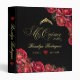 Modern stylish Quinceanera black red and gold 15th birthday sign with beautiful rose and gold dust on with a gold ink pour effect (the gold is a digital effect, not real foil!) and modern calligraphy. Classy Quinceanera and elegant script and chic flowers print .