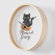 Mischievous Black Cat with Glowing Green Eyes on P Clock