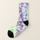 Featuring a unique mismatched design, each sock showcases a blend of colorful patterns in shades of purple, teal, and green. From swirling abstract shapes to geometric motifs, these socks are a celebration of creativity and individuality.