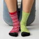 Mismatched Pink Red Stripe Green Snowflake Holiday Socks