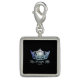 On Black background with Silver Plate casing and clasp, this charm has a gleaming-looking image of a Baby Blue round 4-point Miss America style state/local crown. Text for you to customize to what ever you desire. Sample reads "Miss ********" and "2018" at bottom. Click customize button to begin. Contact us if desired to help you customize this item. Shown in Square but also in Round shape.