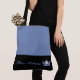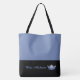 This cute stylish large tote bag is shown in a Medium Blue and black bottom color block style with a Blue pageant crown and custom text.