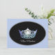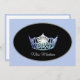 This lovely note card is created of a pretty delphinium blue with an oval of sleek black with a gray border and a lovely blue colored crown