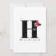 This lovely flat style note card has a big, bold monogram in the middle. Inside of the monogram is a silver-tone crown image and along the side of the monogram is a two tone rose similar to double delight rose. Your last or first name beneath the monogram. Backside has colorful border of rose hot pink. Custom text for you to personalize is shown in "H" and