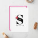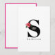 This lovely flat style note card has a big, bold monogram in the middle. Inside of the monogram is a silver-tone crown image and along the side of the monogram is a two tone rose similar to double delight rose. Your last or first name beneath the monogram. Backside has colorful border of rose hot pink. Custom text for you to personalize is shown in "S" and