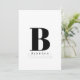 This lovely flat style note card has a big, bold monogram in the middle. Your last in bold and your first name in a barely-there soft grey both names just beneath the monogram. Backside has a black border. Customize text and back border color for you to personalize is shown in "B" and