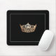 Mouse pad shown with a photo print of a gleaming crown in a gold tone color. Thin border.