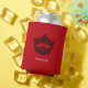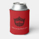 Can cooler shown in a solid color of RED with an iconic American pageant crown printed on front and back in BLACK. Personalized name on front. Personalized title on back. Text shown in WHITE. Personalize this item.