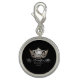 On Black background with Silver Plate casing and clasp, this charm has a gleaming-looking image of a Silver round 4-point Miss America style state/local crown. Text for you to customize sample text reads "Miss Covington Hills Pageant 2018". Click customize button to begin. Contact us if desired to help you customize this item.
