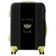 UGO Luggage carry on piece is shown here in the color Black with Yellow accents and with a Lemony Yellow gleaming pageant queens crown printed on and personalized text for you to customize to your very own. Choose your handle, body and wheel colors.