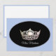 This flat note card or invite is shown in Baby Blue with a Silver gleaming crown print in an oval shape rimmed with a soft Grey border on the front along with personalized text. Backside is White with a Baby Blue border along the outside edges for you to write your message. Customize the text on this item with your personalized name or title. Customize further or buy as designed.