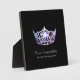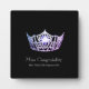 An award for any one who wishes to have a crown on it. Shown in a 5x7" size this plaque is a real stand-up award for your pageant winners, contestants or even best mom. Created in a sleek Black background with light Silver-Grey text specifying the award of your choice which you can customize. Buy as is or change the pageant name of course to your own as well as the award category. Plaque has stand attached and an image of a Gleaming Lilac-Lavender Crown. Scratch resistant coating makes this item a real winner.