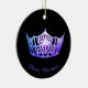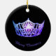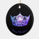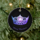 Decorative ornament shown in Black with a round shape with a gleaming Purple Royal blue crown print and coordinating text of Merry Christmas. Customize this item or buy as is.