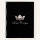 This spiral recipe notebook is shown in sleek Black with a print of a gleaming Silver crown on the cover and has graph paper inside. Beneath the crown is the sample word of "home Designs" in fancy script waiting for you to personalize to your theme. Back cover in solid color of Black with a small silver crown at bottom.