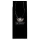This Silver pageant crown gift bag shown in Black and in a tall & slender size. Perfect for a wine bottle. One Silver crown is perched in center on each side along with personalized text. Shown here is "Congratulations" and "Miss*****" for your personalization. Bag has handles. Add some Red Roses tissue paper of ours for that perfect presentation!