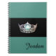 Notebook shown with a photo print of a gleaming Silver colored crown print on a black background and a personalized name. Notebook shown in Teal. Customize this item and change the name to yours or take off, or purchase as shown.