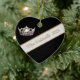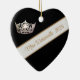 In Black, White and Golden Camel colors, this double-sided heart shape ornament shows a white banner along with personalized text of your name or title and a photo print of a gleaming silver crown.