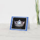 Thank you note card shown with a Royal Blue border, inner coordinating color border with a gleaming Silver pageant crown in the center over a Black background. Printed message of appreciation inside in coordinating color and in semi-scripted text. Customize at selection menu to the right.