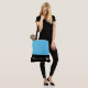 This cute stylish large tote bag is shown in a Blue and Black color block style with a pageant crown and custom text.
