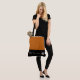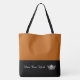 This cute stylish large tote bag is shown in a Pumpkin and Black color block style with a pageant crown and custom text.