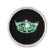 Lapel pin shown with a print of a gleaming Kelly Green-Silver crown. Space for you to personalize with your name, pageant title and year. Customize or buy as is. Suggestion: change image of crown to your own photo.