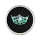 Lapel pin shown with a print of a gleaming Sea Green-Silver crown. Space for you to personalize with your name, pageant title and year. Customize or buy as is. Suggestion: change image of crown to your own photo.