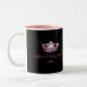 A gleaming Pink crown print poised front and center on each side of this coffee/cocoa mug. Shown on a Black & White mug with a Pink interior and coordinating Pink text. Customize your interior and Personalize the sample text to your own. Shown as Miss Des Moines 1982.